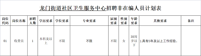 龍門街道社區(qū)衛(wèi)生服務(wù)中心招聘編外人員崗位及要求