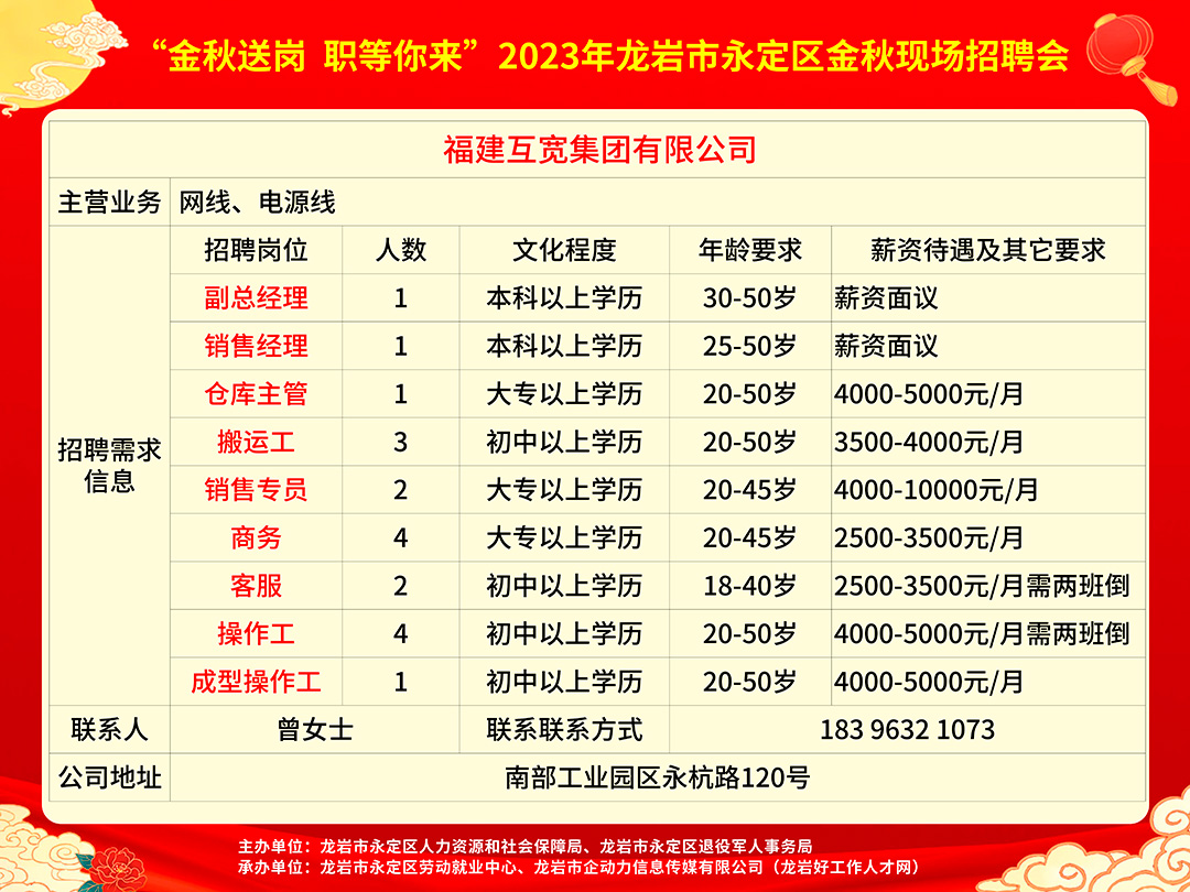承辦單位: 龍巖市永定區(qū)勞動就業(yè)中心 龍巖市企動力信息傳媒有限公司