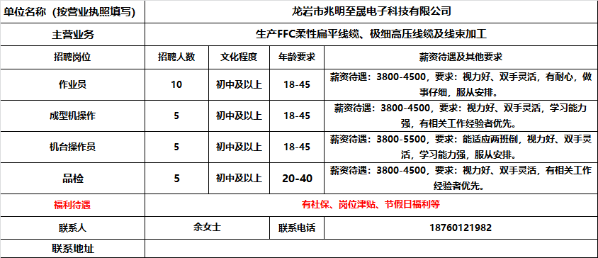 本網(wǎng)站經(jīng)福建省龍巖市人社局批準(zhǔn),為正規(guī)合法人才網(wǎng)站,人力資源服務(wù)許可證:(閩)人服證字〔2019〕第0801000113號(hào)