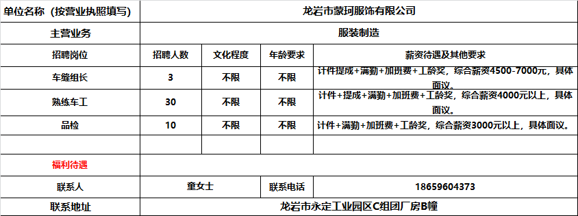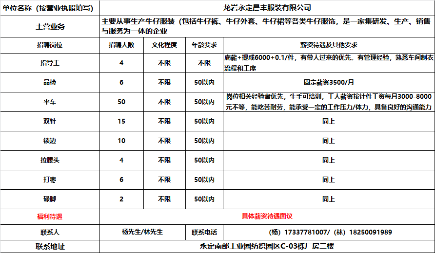 友情提示:龍巖好工作人才網(wǎng)敬請(qǐng)讀者選擇時(shí)注意自我保護(hù)并查驗(yàn)對(duì)方相關(guān)手續(xù)。勞動(dòng)法規(guī)定:招工禁收押金