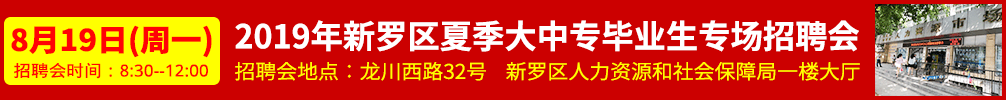 為搭建用人單位和各類勞動(dòng)者雙向交流平臺(tái),促進(jìn)大中專畢業(yè)生、進(jìn)城務(wù)工人員就業(yè),推進(jìn)精準(zhǔn)就業(yè)扶貧工作,新羅區(qū)人力資源和社會(huì)保障局定于2019年8月19日(周一),在龍川西路32號(hào)新羅區(qū)人力資源和社會(huì)保障局一樓大廳舉辦“2019年新羅區(qū)夏季大中專畢業(yè)生”專場招聘會(huì),歡迎各用人單位和各類求職者參會(huì)。