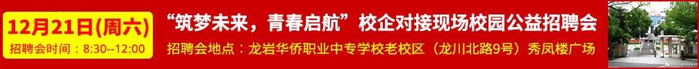 為服務(wù)區(qū)域產(chǎn)業(yè)發(fā)展,大力構(gòu)建畢業(yè)生與用工企業(yè)的交流平臺,積極為企業(yè)輸送各類應(yīng)用技術(shù)型人才,為市、區(qū)重點(diǎn)產(chǎn)業(yè)集聚發(fā)展服務(wù),實(shí)現(xiàn)校企互利共贏。特舉辦龍巖華僑職業(yè)中專學(xué)校校園公益招聘會,現(xiàn)就有關(guān)事項(xiàng)通知如下: