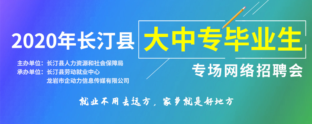 主辦單位: 長汀縣人力資源和社會保障局 承辦單位:長汀縣勞動就業(yè)中心、龍巖市企動力信息傳媒有限公司