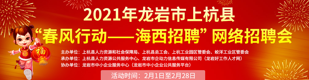 承辦單位: 上杭縣人力資源公共服務(wù)中心、龍巖市企動(dòng)力信息傳媒有限公司(龍巖好工作人才網(wǎng))