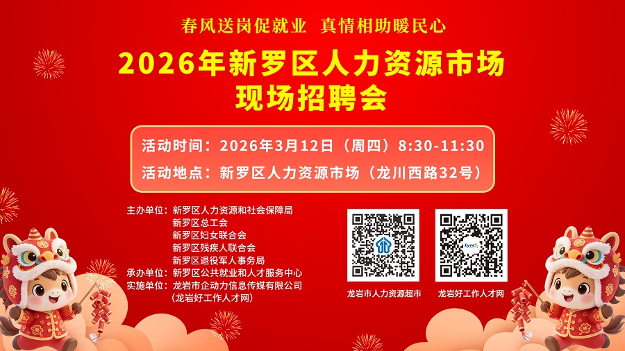 舉辦地點(diǎn): 新羅區(qū)人力資源市場(chǎng)(龍川西路32號(hào))