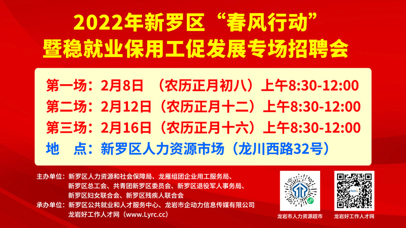舉辦地點:新羅區(qū)人力資源市場(龍川西路32號)
