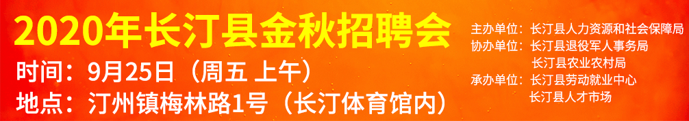 舉辦單位:長汀縣人力資源和社會保障局 協(xié)辦單位:長汀縣退役軍人事務(wù)局、長汀縣農(nóng)業(yè)農(nóng)村局 承辦單位:長汀縣勞動就業(yè)中心、長汀縣人才市場