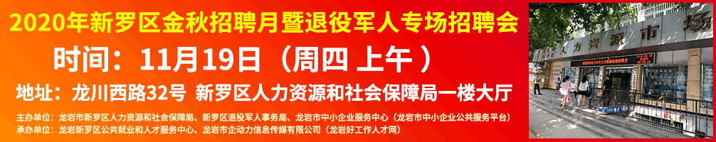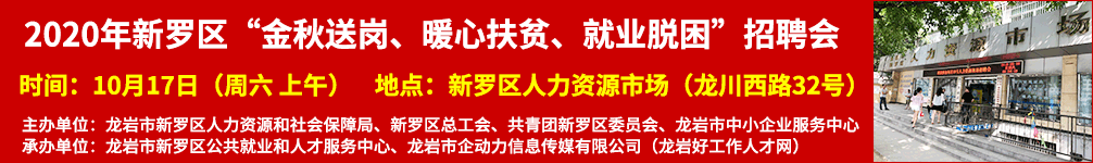舉辦單位:龍巖市新羅區(qū)人力資源和社會保障局 協(xié)辦單位:企動力好工作人才網(wǎng)(www.jinhangda.com.cn)