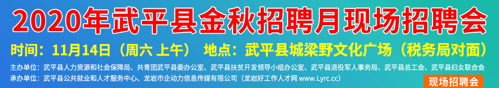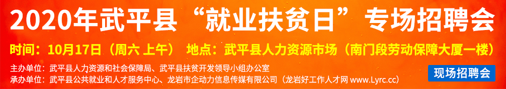 舉辦單位:武平縣人力資源和社會保障局 承辦單位:武平縣公共就業(yè)和人才服務(wù)中心、龍巖市企動力信息傳媒有限公司(龍巖好工作人才網(wǎng) www.jinhangda.com.cn)