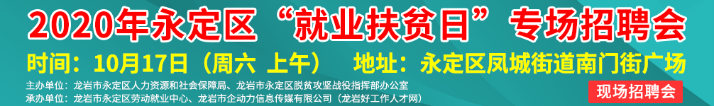 舉辦單位:龍巖市永定區(qū)人力資源和社會保障局、龍巖市永定區(qū)脫貧攻堅戰(zhàn)役指揮部辦公室 承辦單位:龍巖市永定區(qū)勞動就業(yè)中心、龍巖市企動力信息傳媒有限公司(龍巖好工作人才網(wǎng))