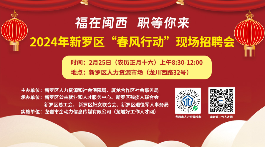 舉辦單位:廈龍合作區(qū)社會事務局、新羅區(qū)人力資源和社會保障局