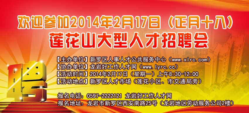 舉辦地點(diǎn):新羅區(qū)人才市場(蓮花小區(qū)市交通局旁)