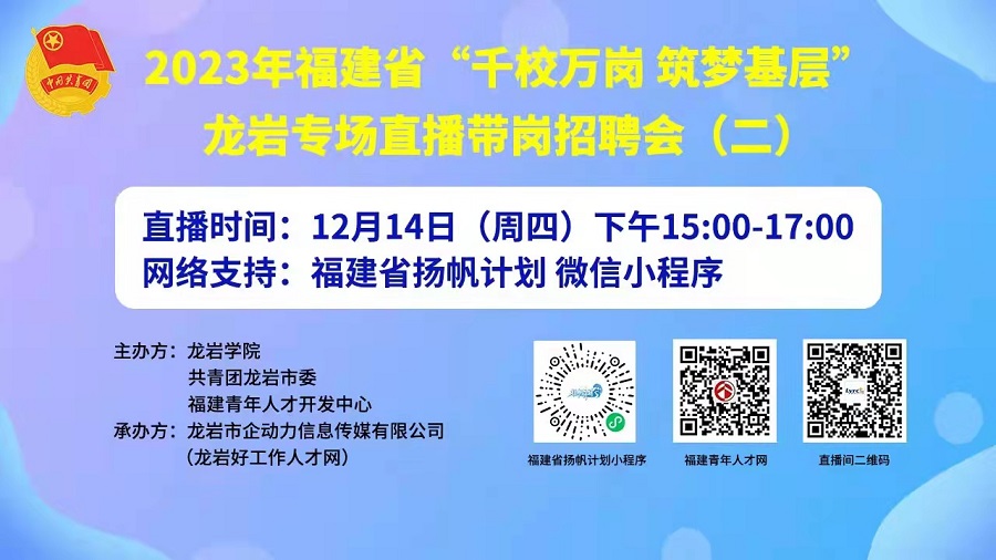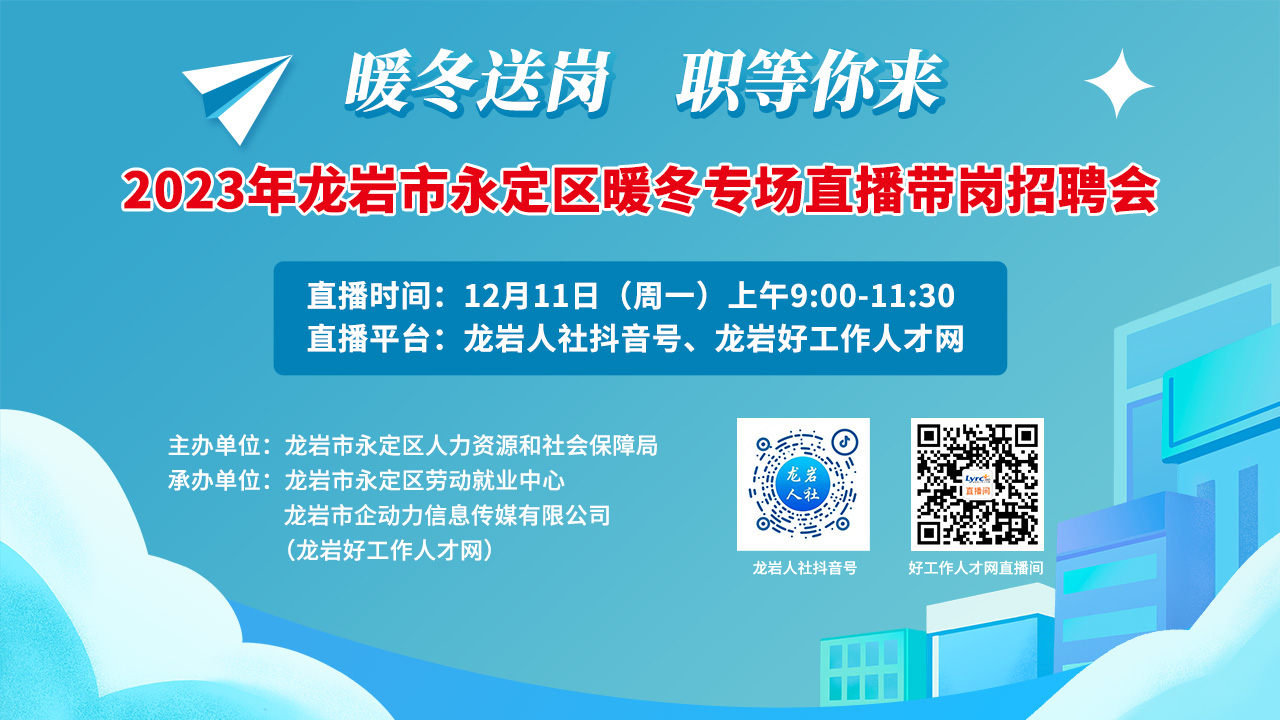 舉辦地點(diǎn):龍巖人社抖音號、龍巖好工作人才網(wǎng)直播間