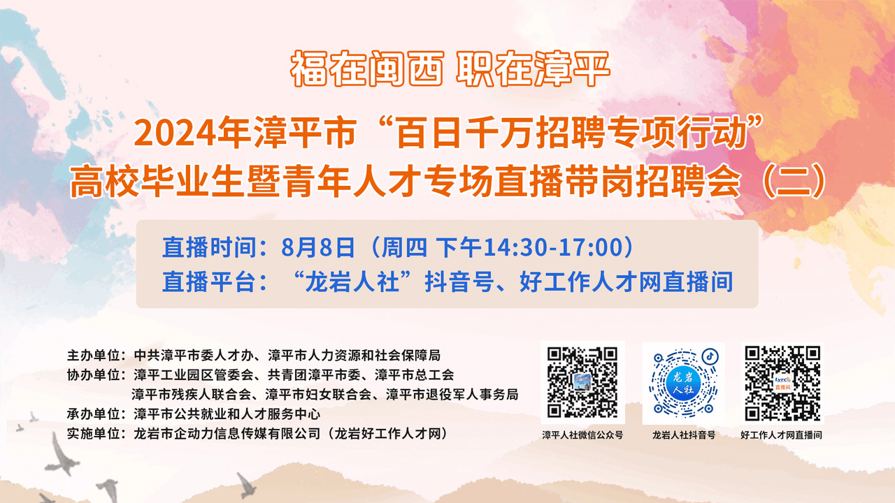 舉辦地點(diǎn):龍巖人社抖音號、龍巖好工作人才網(wǎng)直播間