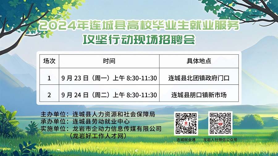 舉辦地點(diǎn):新羅區(qū)人力資源市場(龍川西路32號)