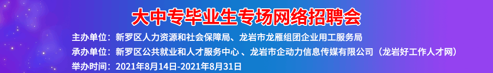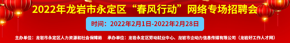 舉辦地點(diǎn):龍巖好工作人才網(wǎng)(www.jinhangda.com.cn)網(wǎng)絡(luò)招聘專欄