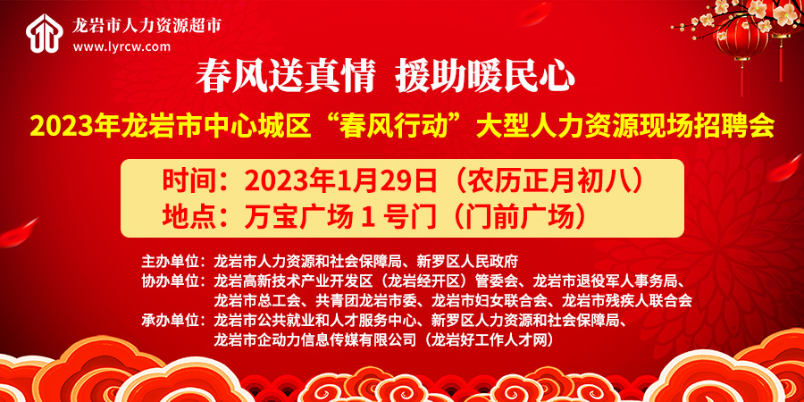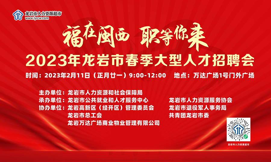 舉辦單位:新羅區(qū)人力資源和社會(huì)保障局、龍雁組團(tuán)企業(yè)用工服務(wù)局、新羅區(qū)總工會(huì)、共青團(tuán)新羅區(qū)委員會(huì)、新羅區(qū)退役軍人事務(wù)局、新羅區(qū)婦女聯(lián)合會(huì)、新羅區(qū)殘疾人聯(lián)合會(huì)