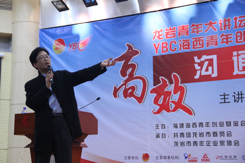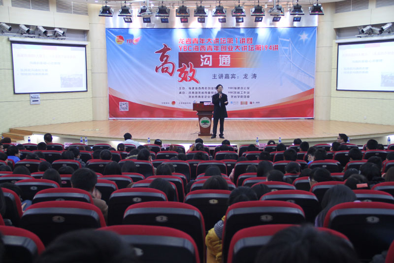 此次大講壇邀請(qǐng)了中國(guó)口才演講協(xié)會(huì)理事、福建省演講與口才協(xié)會(huì)常務(wù)副會(huì)長(zhǎng)、盛世龍騰企業(yè)管理咨詢公司董事長(zhǎng)、YBC創(chuàng)業(yè)導(dǎo)師、倫敦商學(xué)院工商管理博士龍濤為青年們作了題為“高效溝通”的專題演講;顒(dòng)中,龍濤博士采用講授、互動(dòng)、演練、模擬等教學(xué)手段,結(jié)合工作生活中的實(shí)際案例向在場(chǎng)的青年們傳授溝通技巧,培養(yǎng)青年們的親和力和溝通力,讓青年們?cè)谏钪休p松贏得友誼,發(fā)揮影響力,展現(xiàn)溝通魅力。龍濤博士以其精辟的講解、有力的建議贏得了在場(chǎng)青年的熱烈掌聲。