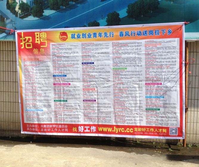 送崗位下鄉(xiāng)招聘(企業(yè)招聘信息海報張貼到新羅區(qū)280個村部/社區(qū)醒目位置)--詳見附件示意圖