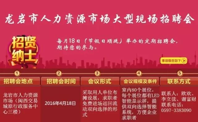 龍巖市人力資源市場2016年每月定期現(xiàn)場招聘會時間表