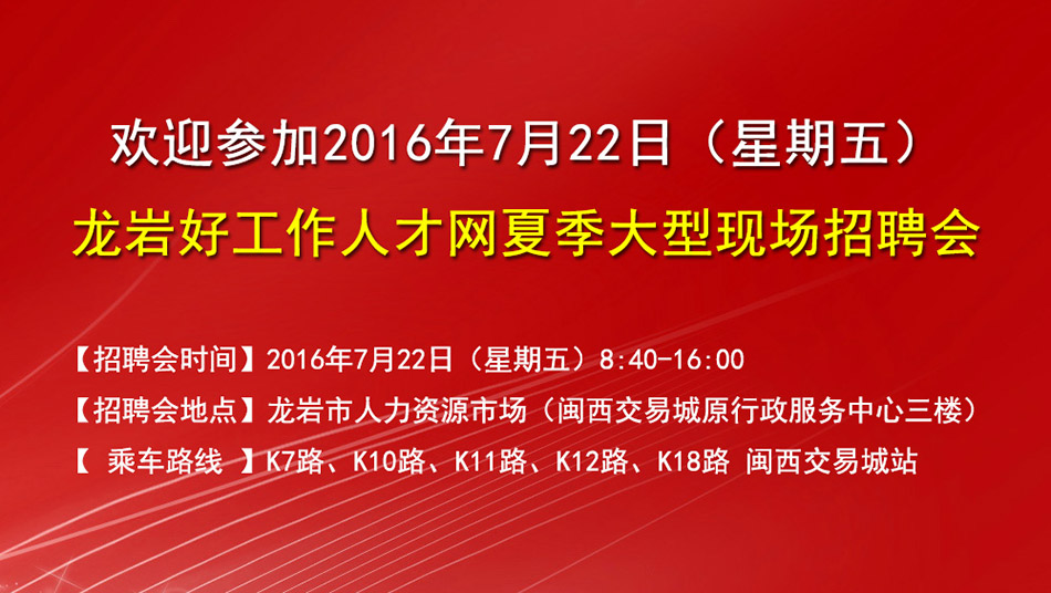 發(fā)布時(shí)間:2016-07-21 17:00:24 | 來源:龍巖好工作人才網(wǎng) | 已瀏覽人次