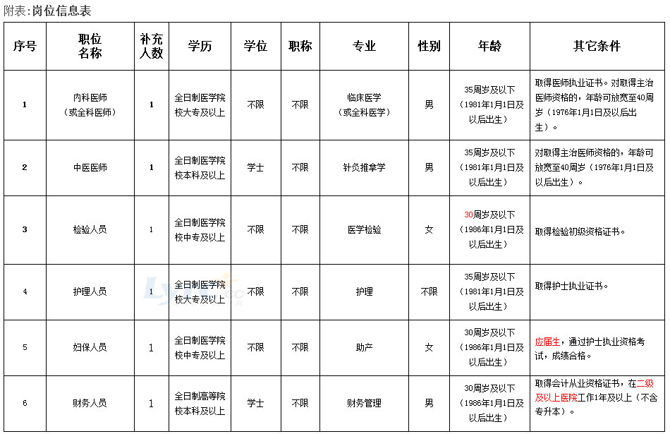 我院東城社區(qū)衛(wèi)生服務(wù)中心因工作需要,需招聘臨床醫(yī)師2名,檢驗1名、護士1名、助產(chǎn)士1名、會計1名。