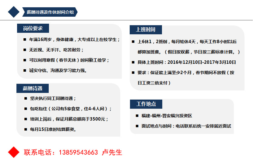 友情提示:龍巖好工作人才網(wǎng)敬請(qǐng)讀者選擇時(shí)注意自我保護(hù)并查驗(yàn)對(duì)方相關(guān)手續(xù)。勞動(dòng)法規(guī)定:招工禁收押金