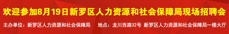 下一篇: 歡迎參加8月19日新羅區(qū)人力資源和社會保障局現(xiàn)場招聘會