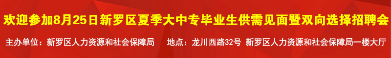 下一篇: 【參會(huì)名單】歡迎參加8月19日新羅區(qū)人力資源和社會(huì)保障局現(xiàn)場(chǎng)招聘會(huì)