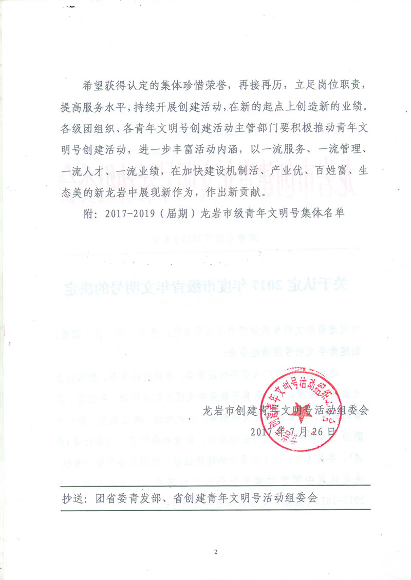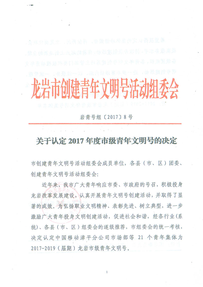 近日,從龍巖市創(chuàng)建青年文明號活動組委會下發(fā)的《關(guān)于認定2017年度市級青年文明號的決定》獲悉,龍巖市企動力信息傳媒有限公司(龍巖好工作人才網(wǎng))榮獲2017—2019年度龍巖市級“青年文明號”榮譽稱號。