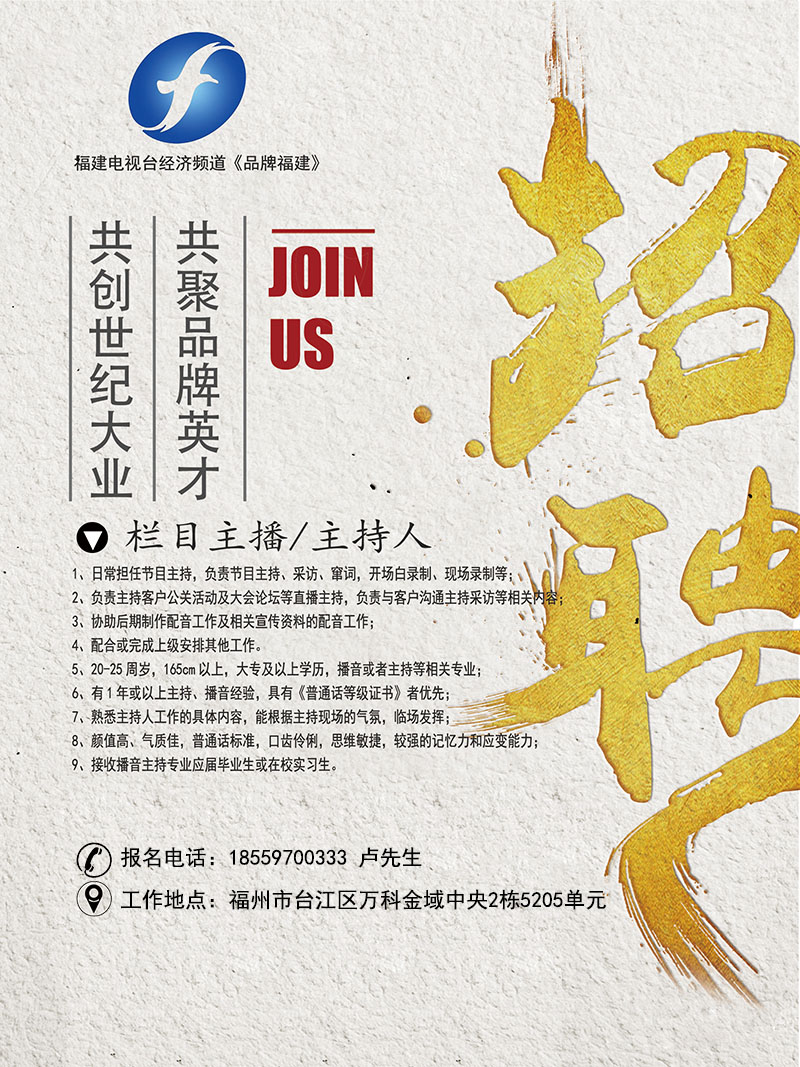 福建電視臺經(jīng)濟頻道《品牌福建》招聘欄目主播/主持人
