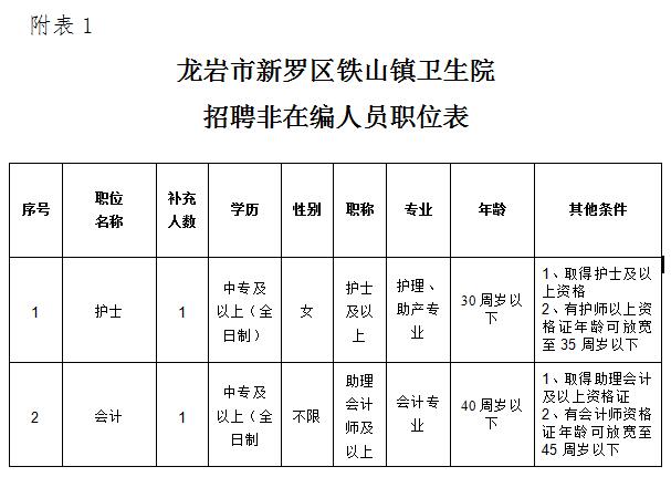 附件1:龍巖市新羅區(qū)鐵山鎮(zhèn)衛(wèi)生院招聘非在編人員職位表(點擊下載)