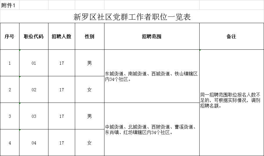 附件1:新羅區(qū)社區(qū)黨群工作者職位一覽表