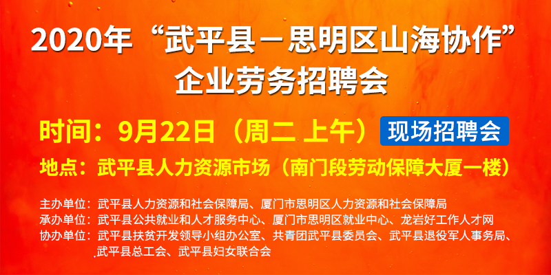 主辦單位:龍巖市武平縣人力資源和社會保障局、廈門市思明區(qū)人力資源和社會保障局
