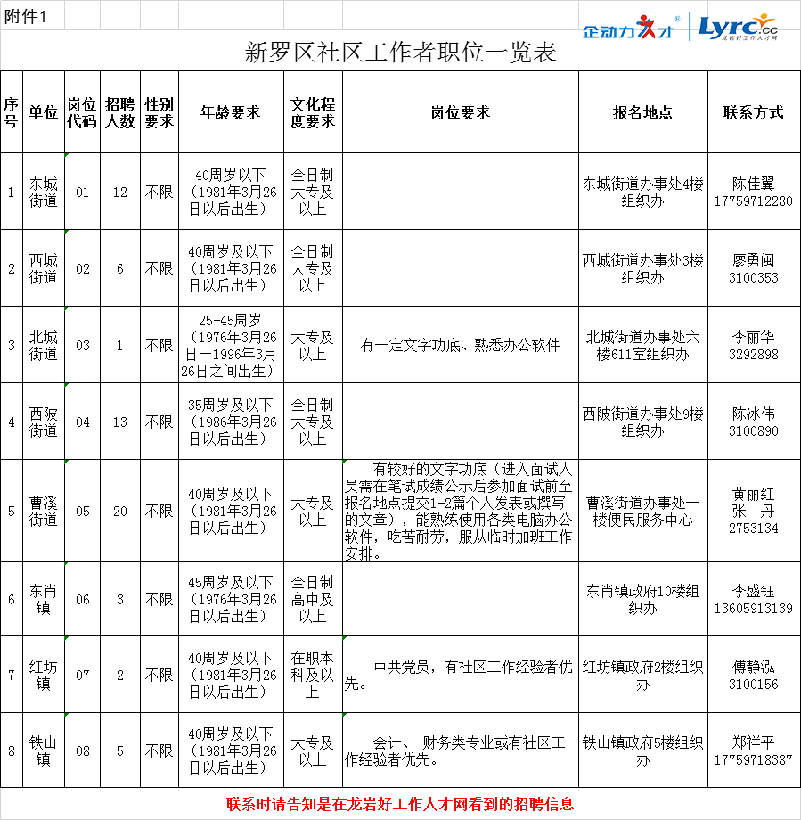 附件1:新羅區(qū)社區(qū)工作者職位一覽表