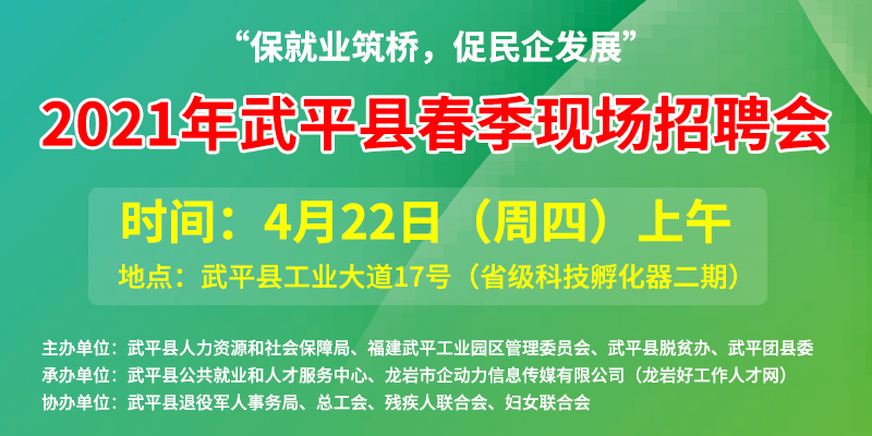 歡迎參加2021年武平縣春季現(xiàn)場(chǎng)招聘會(huì)