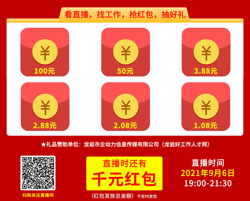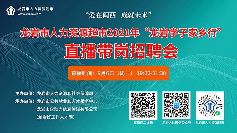 活動主題:“愛在閩西 成就未來”龍巖市人力資源超市2021年“龍巖學(xué)子家鄉(xiāng)行”直播帶崗招聘會
