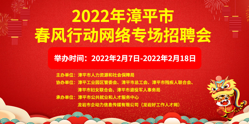 2022年漳平市春風行動網(wǎng)絡(luò)專場招聘會