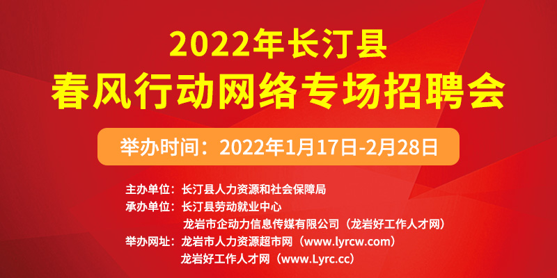 歡迎參加2022年長(zhǎng)汀縣春風(fēng)行動(dòng)網(wǎng)絡(luò)專場(chǎng)招聘會(huì)