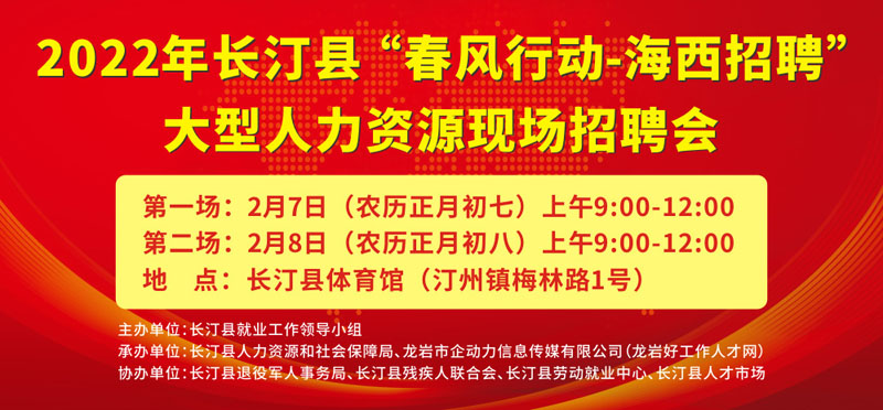 關(guān)于舉辦2022年長汀縣“春風(fēng)行動-海西招聘”