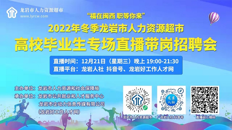 “福在閩西 職等你來”2022年冬季龍巖市人力資源超市高校畢業(yè)生專場直播帶崗招聘會