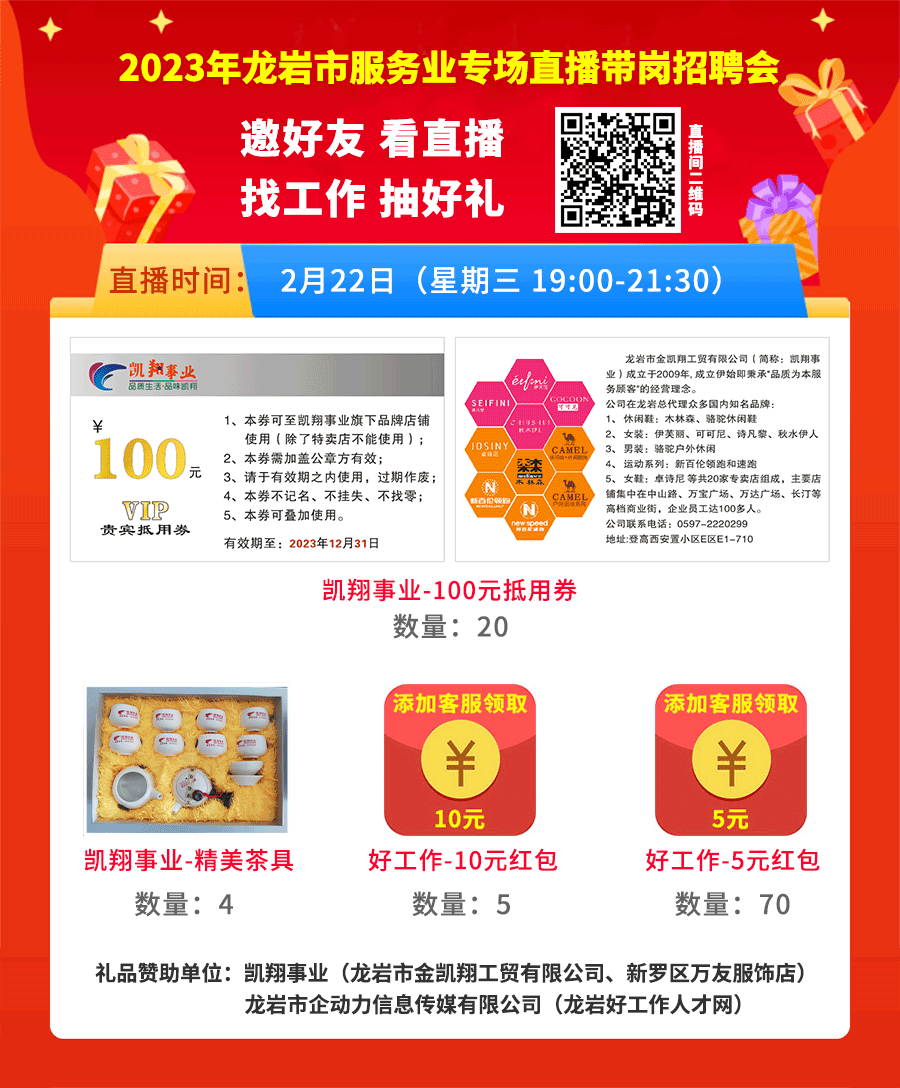 【直播回放】“福在閩西 職等你來(lái)”2023年龍巖市服務(wù)業(yè)專場(chǎng)直播帶崗招聘會(huì)
