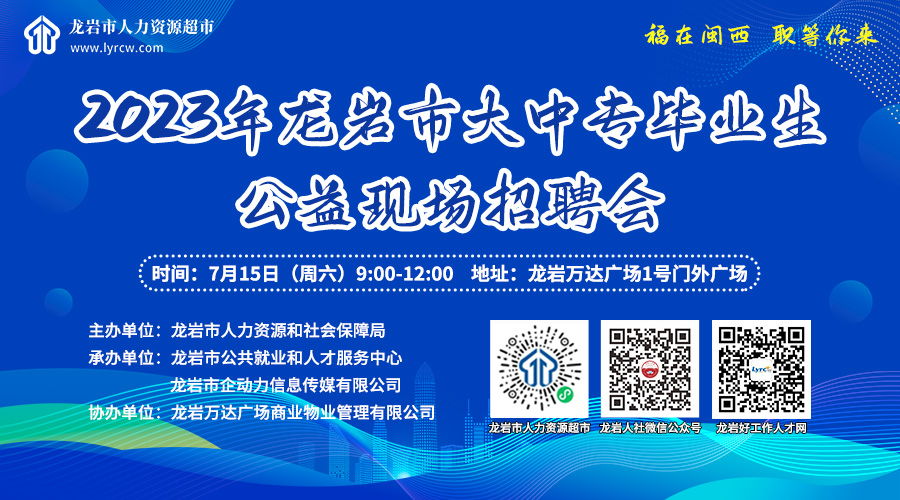 為深入貫徹黨的二十大精神,深化實(shí)施就業(yè)優(yōu)先戰(zhàn)略,全方位推動精準(zhǔn)就業(yè)服務(wù),建立企業(yè)與大中專畢業(yè)生雙向?qū)咏涣髌脚_,促進(jìn)大中專畢業(yè)生充分就業(yè),幫助緩解企業(yè)用工和人才緊缺矛盾,龍巖市人力資源和社會保障局定于7月15日舉辦“福在閩西 職等你來”2023年龍巖市大中專畢業(yè)生公益現(xiàn)場招聘會,具體工作方案如下: