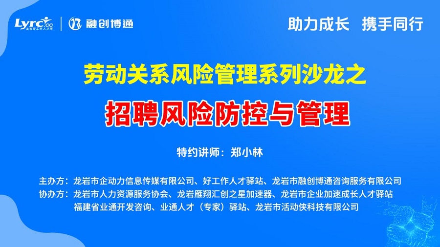 4月13日下午,由龍巖市企動力信息傳媒有限公司和龍巖市融創(chuàng)博通咨詢服務(wù)有限公司共同主辦,聯(lián)合龍巖市人力資源服務(wù)協(xié)會、龍巖雁翔匯創(chuàng)之星加速器、福建省業(yè)通開發(fā)咨詢有限公司、龍巖市活動俠科技有限公司共同協(xié)辦的《招聘風(fēng)險防控與管理》的公益沙龍活動圓滿落幕。特邀有多年企業(yè)用工風(fēng)險實戰(zhàn)經(jīng)驗的福建公治律師事務(wù)所主任鄭小林律師,用法律解讀與實際管理案例相結(jié)合的方式,帶領(lǐng)HR們快速識別招聘風(fēng)險,提升招聘風(fēng)險防控管理的能力。此次到場參加的30名HR們都滿載而歸,意猶未盡。