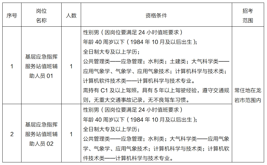 3.工作時(shí)間與休息安排:納入龍巖市應(yīng)急管理局統(tǒng)一值班。工作時(shí)間一般為上班一天,24小時(shí),休息兩天。