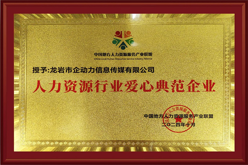 在峰會頒獎環(huán)節(jié),龍巖好工作人才網(wǎng)榮獲“人力資源行業(yè)愛心典范企業(yè)”,這一榮譽(yù)不僅體現(xiàn)了龍巖好工作人才網(wǎng)在行業(yè)內(nèi)的良好口碑和影響力,也彰顯了其作為愛心企業(yè)的社會責(zé)任感和擔(dān)當(dāng)精神。