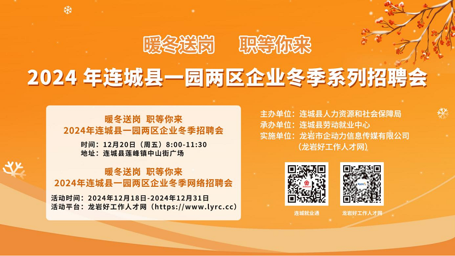 “暖冬送崗 職等你來”2024年連城縣一園兩區(qū)企業(yè)冬季網(wǎng)絡(luò)招聘會(huì)