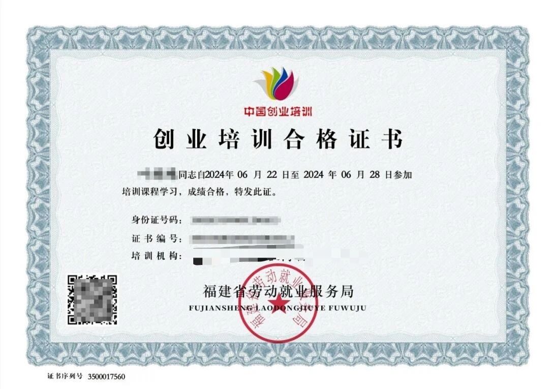 ★頒發(fā)由福建省勞動就業(yè)服務(wù)局認(rèn)證的創(chuàng)業(yè)培訓(xùn)合格證書。學(xué)員可登錄福建省公共就業(yè)服務(wù)網(wǎng)(http://220.160.52.235:81/zscx.msw)獲取電子證書。。