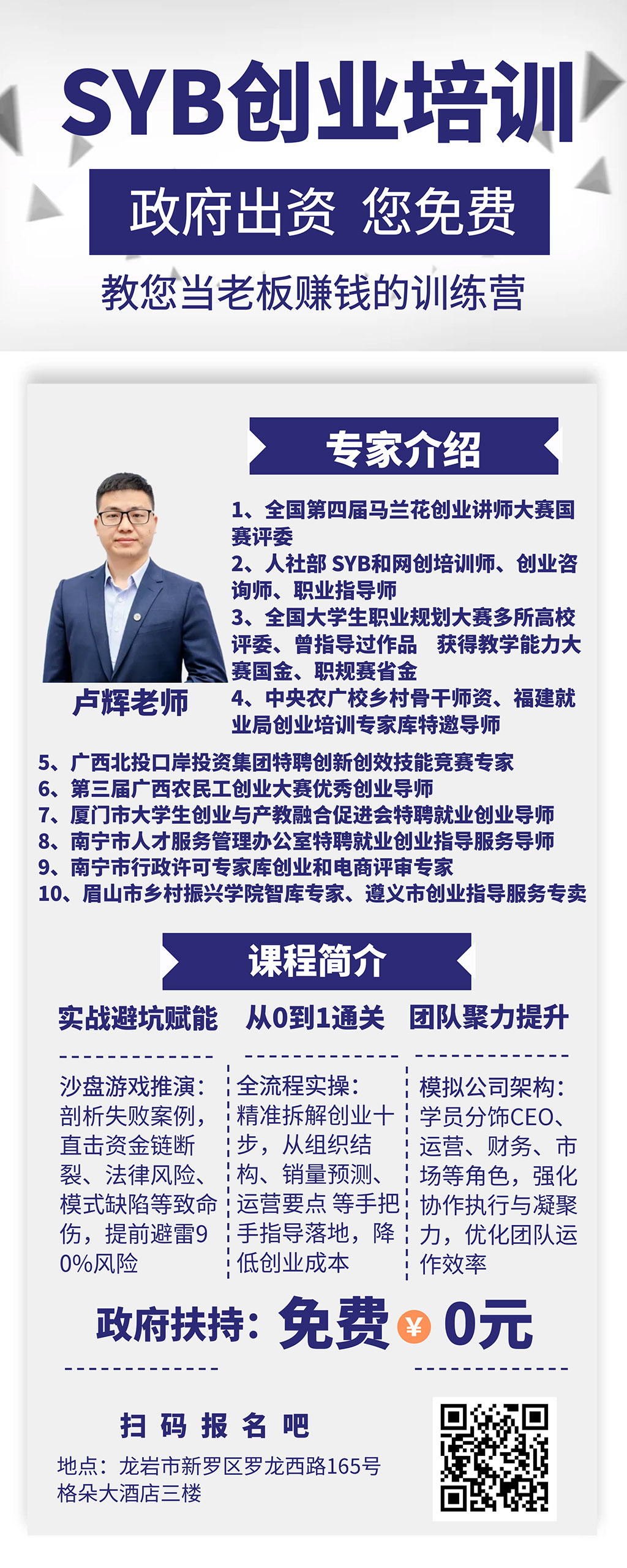 【1月16日開班】龍巖創(chuàng)業(yè)培訓(xùn)1月16日開班,政府出資,免費學(xué)創(chuàng)業(yè)!名額有限!