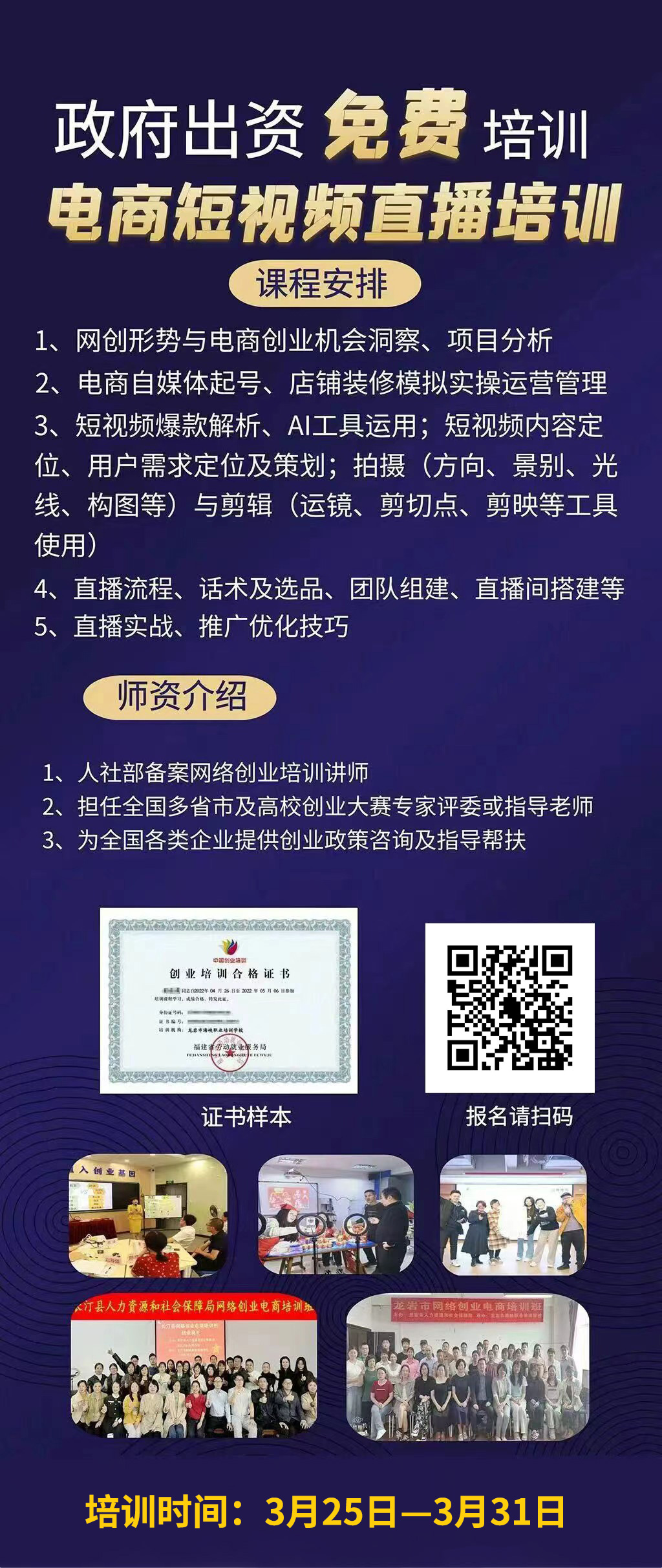 【免費(fèi)培訓(xùn)】龍巖電商AI短視頻直播培訓(xùn)3月25日開班啦!人社部部級(jí)培訓(xùn)師來巖授課,名額有限速搶!